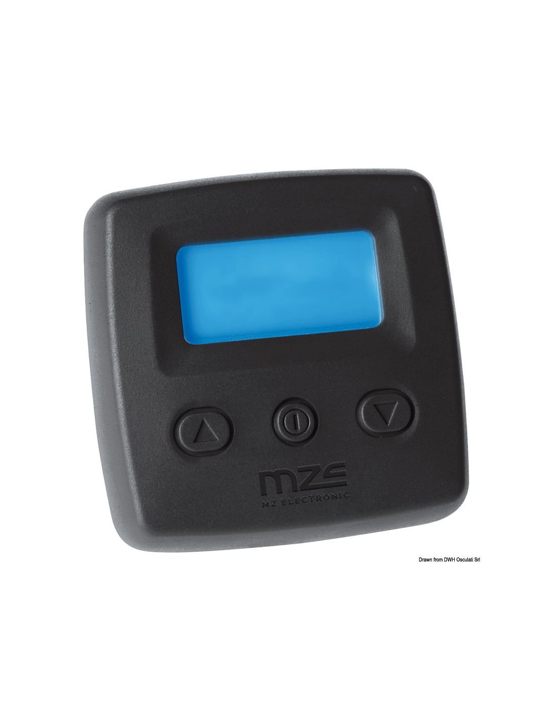 Con display LCD e pulsanti retroilluminati, ingombro 100x100 mm. Fornisce: metri ancore calate o salpate; velocità catena; tensione di alimentazione; ampère assorbiti dal motore; allarme salita; ore di uso del verricello.