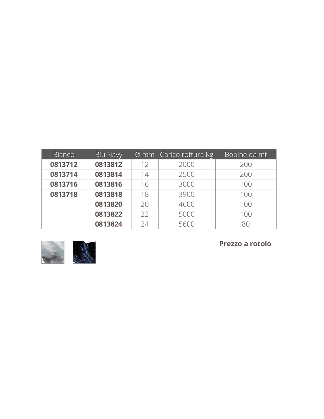 Treccia in poliestere affondante ad Alta tenacita’ - Square line a 8 lignoli con lavorazione a gherlino (doppio ritorto), ideale per ormeggio e ancoraggio.