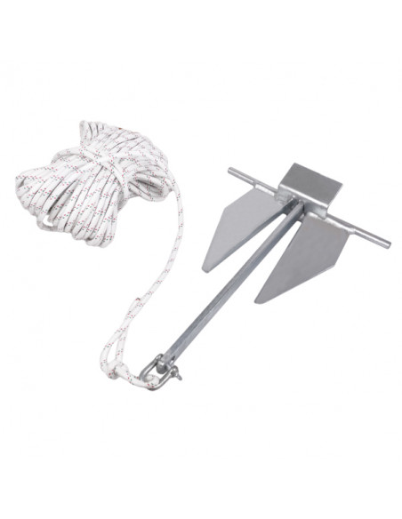 Kit ormeggio: ancora tipo Danforth in acciaio zincato 2 kg + cima
