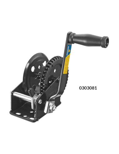 Argano Manuale fabbricato in acciaio verniciato nero con freno, per alaggio imbarcazioni, per carrelli porta barca. Fornito senza cavo. I carichi di trazione si riferiscono con una sola spira di cavo.