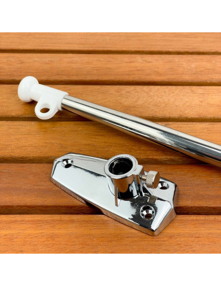 Astina a sezione conica adatta per issare bandiera con base di fissaggio in plastica cromata.