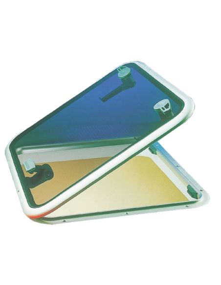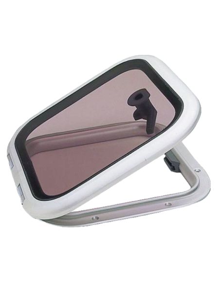 Con sporgenza di soli 25 mm dalla coperta. Approvato CE per AREA 2. Dotato di maniglie esterne per apertura dal ponte e frizione di tenuta in qualsiasi posizione anche a 95° di apertura. In alluminio anodizzato contro la corrosione e con profilo ricurvo per maggiore rigidità. Per quantità è possibile ottenere finitura bianca oppure alluminio lucido a specchio.
