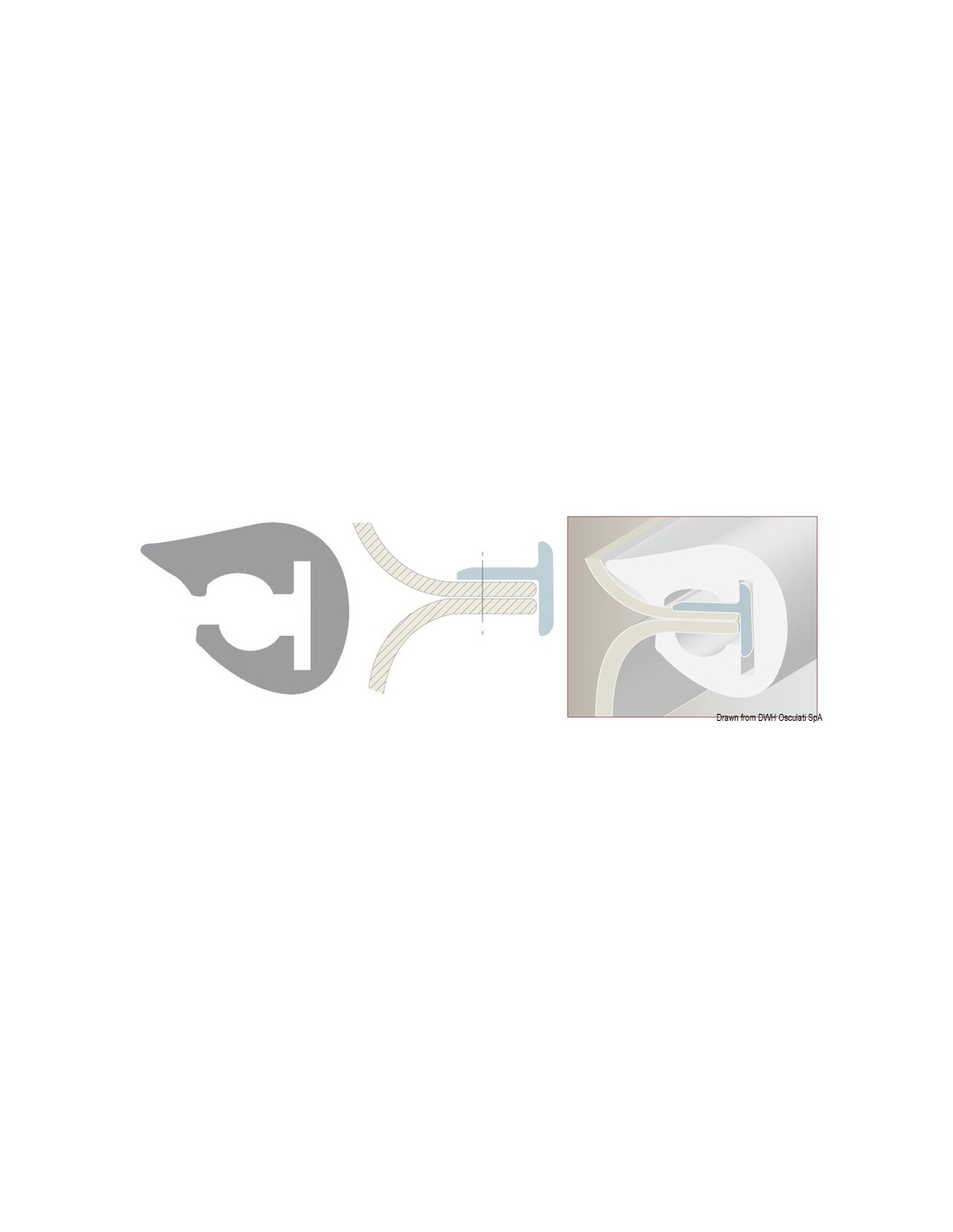 Profilo in PVC flessibile con supporto in PVC semi rigido. Prende facilmente qualsiasi piega. Adatto per scafi con giunzione a labbro, rotoli da 24 m. Ordine minimo 24 m per modello.
