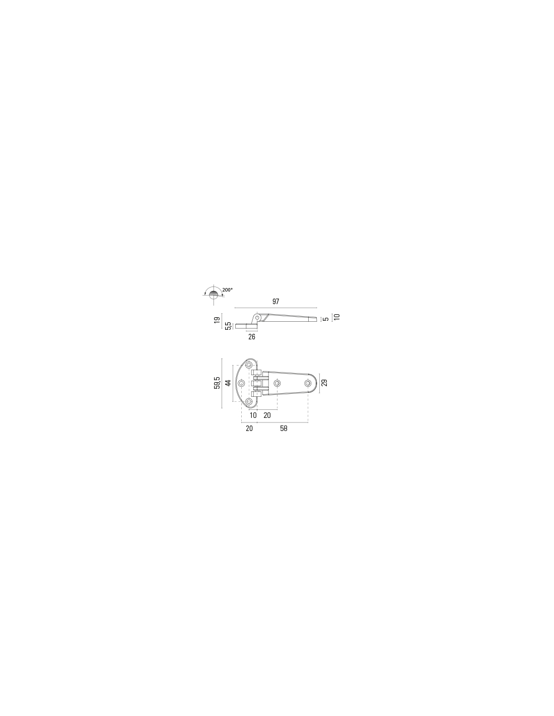 Cerniera in ottone cromato dim. base mm. 60X26, ala mm. 66X29, altezza squadra mm. 13