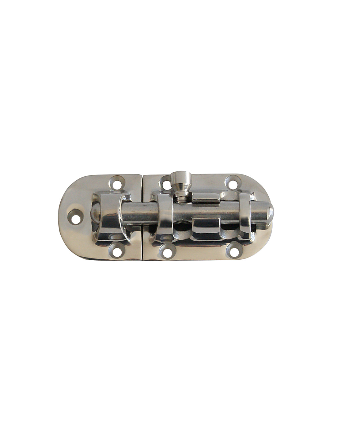 Catenaccio in acciaio inox AISI 316 con boccola antivibrante. Dimensioni: lunghezza mm 90 x larghezza mm 38.
