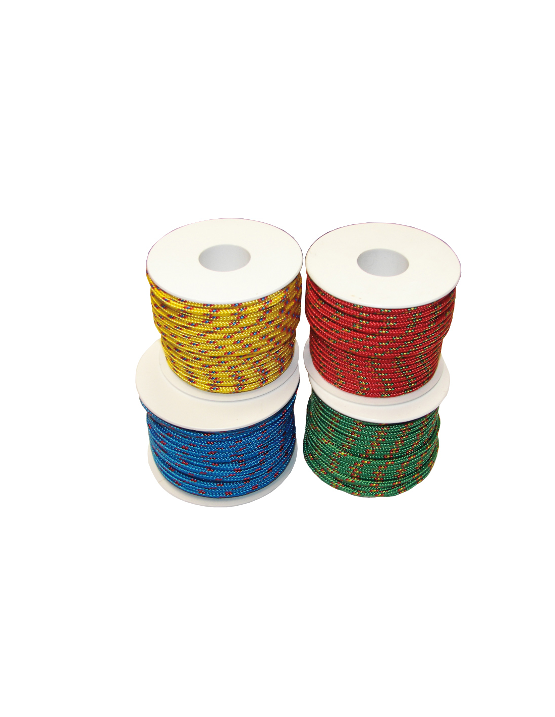 Treccia con calza esterna in poliestere ad Alta tenacita’ ed anima interna in nylon ad Alta tenacita’ a trefoli paralleli. Trecciolina morbida, versatile e molto tenace, insensibile agli agenti atmosferici. Con segnalino colorato, ideale per wind-surf, fucili sub, legature in genere, ecc..