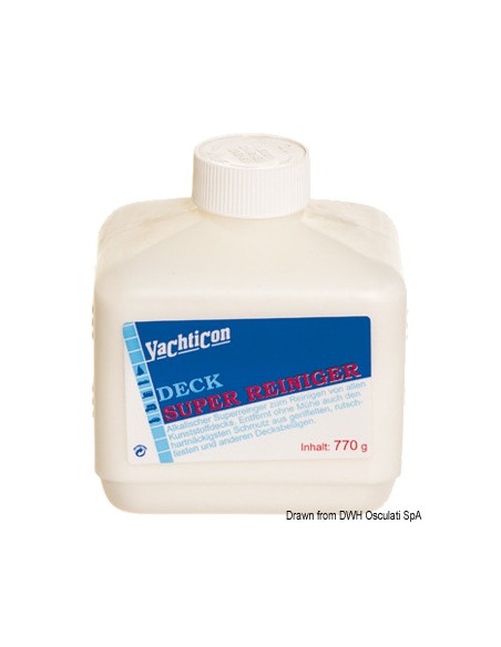Prodotto aggressivo per rimuovere macchie di unto, di scarpe ed ogni sudiciume dagli intersizi della coperta in fiberglass con superficie antisdrucciolo che naturalmente tende a trattenere lo sporco. Non rovina il teak o superfici plastiche di qualsiasi tipo. Non serve grattare con spazzole dure. Prodotto concentrato in polvere.Confezione da 770 g.