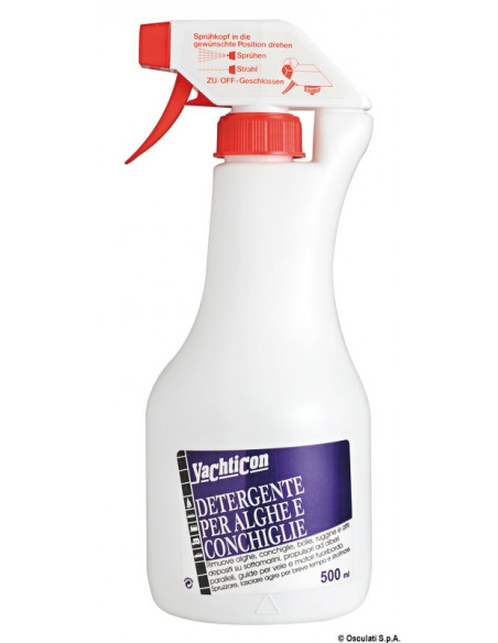 rimuove alghe e vegetazione marina dalla carena, gruppi poppieri, eliche ecc. Ideale per pulire linea di galleggiamento.Confezione da 500 ml.
