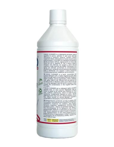 MAGIC CLEANER è un detergente polivalente, ideale per aggredire lo sporco ostinato in ogni punto della barca: vetroresina e superfici esterne, tendalini, parabordi, rivestimenti interni, attrezzature di bordo inclusa la cucina e gli altri accessori.