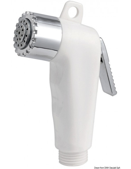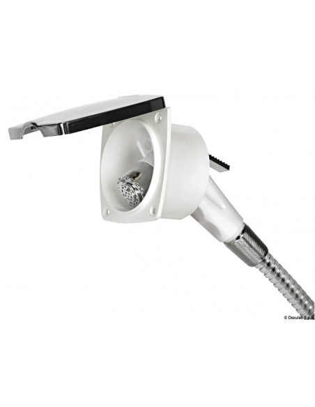 Doccia in plastica con testa cromata, vano di allaggiamento in ASA UV resistente