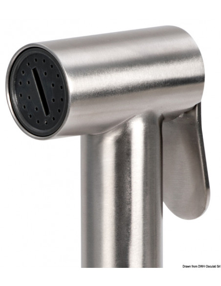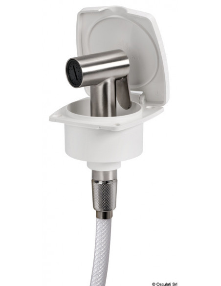 Doccia in acciaio inox, vano di alloggiamento bianco in ASA UV resistente.