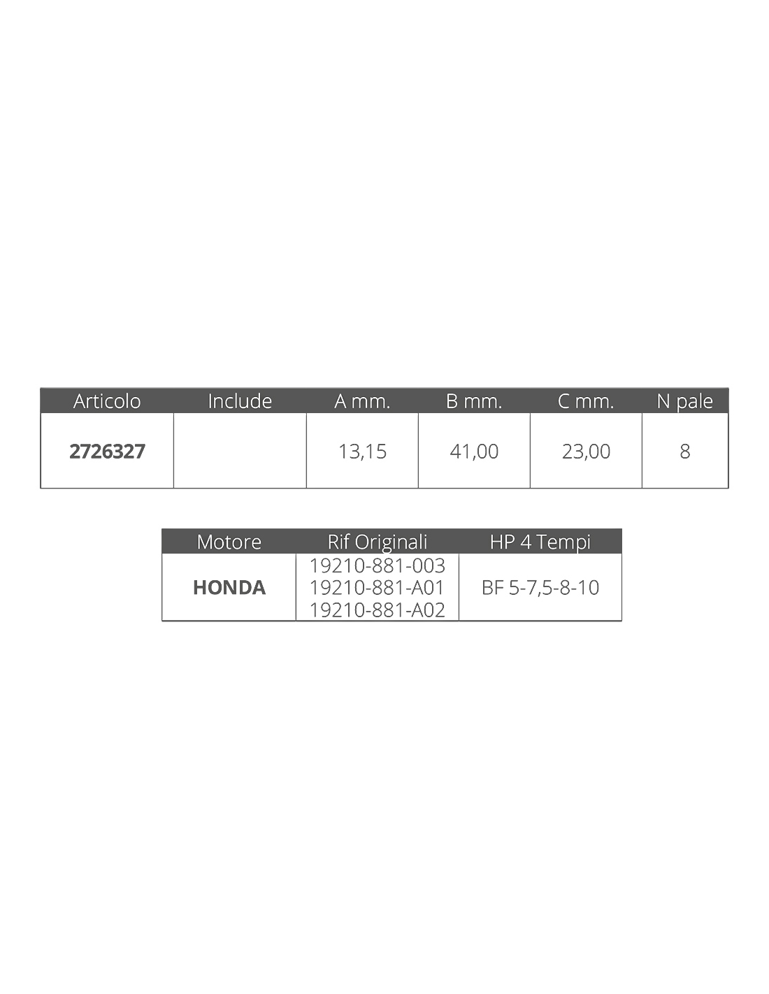 dim. Ø int.mm.14,2 Ø est.mm.41 spessore mm.23, nr.8 pale