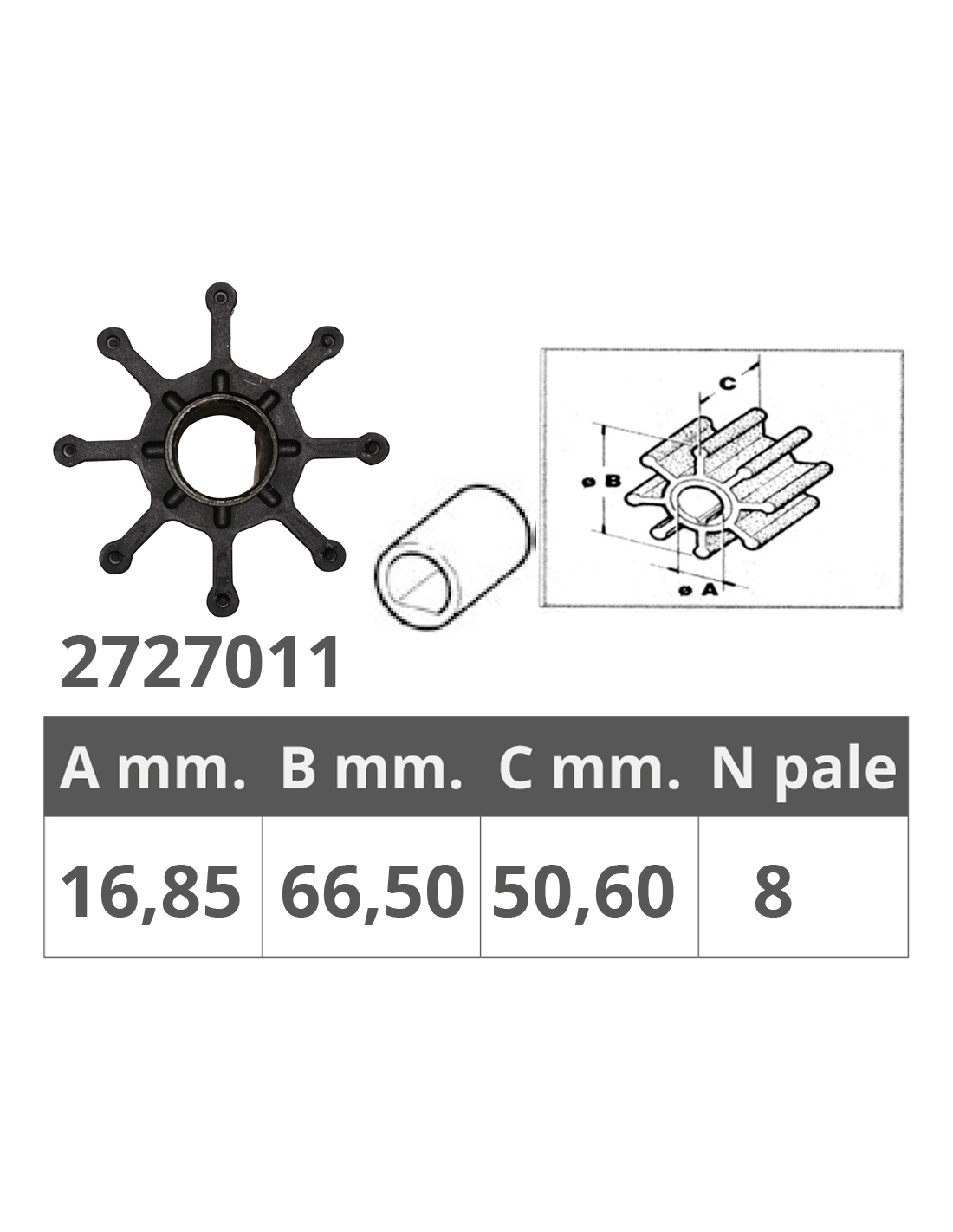 dim. Ø int.mm.19,05 Ø est.mm.66,5 spessore mm.50,6, nr.8 pale