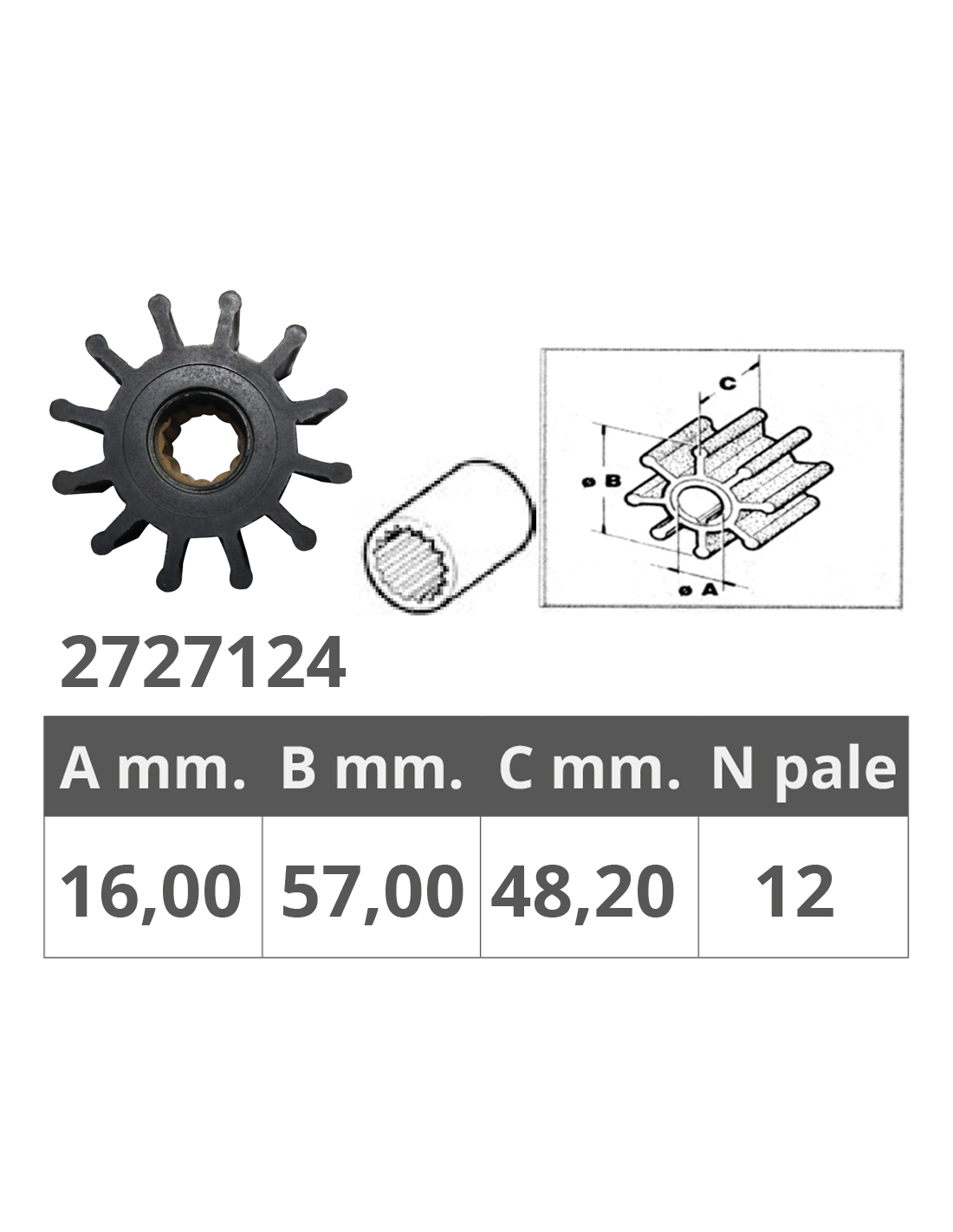 Dim. Ø int.mm. 16 Ø est.mm.57 spessore mm.48,2, nr.12 pale
