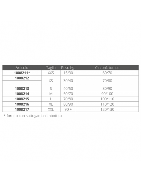 UNI EN ISO 12402-3. Circonferenza toracica cm.