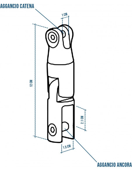 Collega l’ancora alla catena e, ruotando, la mantiene nella corretta posizione, rendendone più facile il recupero e il suo posizionamento nel musone.