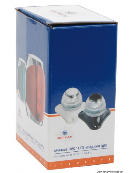 Certificato RINA per imbarcazioni fino a 50 m in accordo con Colreg72. Voltaggio universale 12/24 V. Totalmente stagni. Visibilità 2 NM.