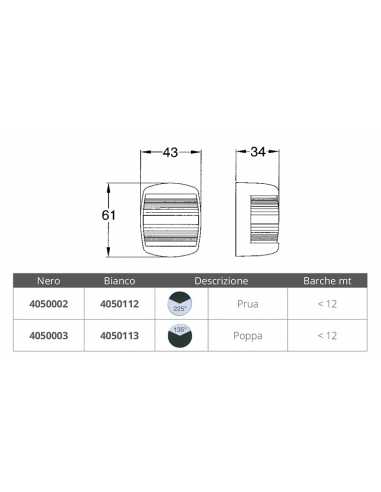 Fanali dl via omologati R.I.Na.in policarbonato resistenti ai raggi UV classe di protezione IP56 completi di attestato di omologazione RI.Na. elampadina 12V