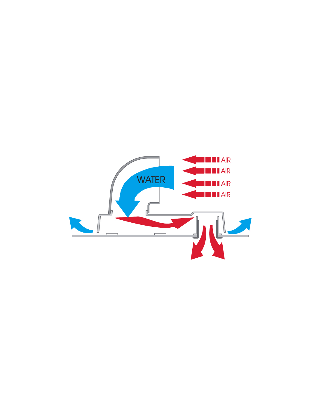 Presa aria Dorade composta da base in ABS rigido e da manica a vento in morbido PVC bianco lucido, interno colorato di blu o rosso, coperchio avvitabile, tappo e boccola di protezione.
