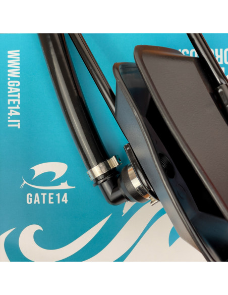 Il flusher si aggrappa al piede del motore, mentre le due cuffie si pongono in corrispondenza delle griglie di aspirazione dell’acqua di raffreddamento.