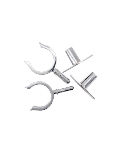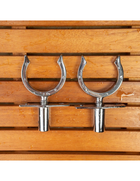 Coppia di scalmi in ottone cromato con boccola e sgancio a baionetta.