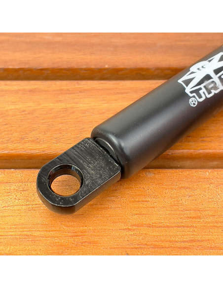 Ammortizzatore a stantuffo occhio-occhio con corpo del braccetto in acciaio rivestito di polveri epossidiche che comportano un’ottima stabilità chimica: non viene intaccato dagli effetti corrosivi dell’acqua marina, non si ossida e non scolorisce.