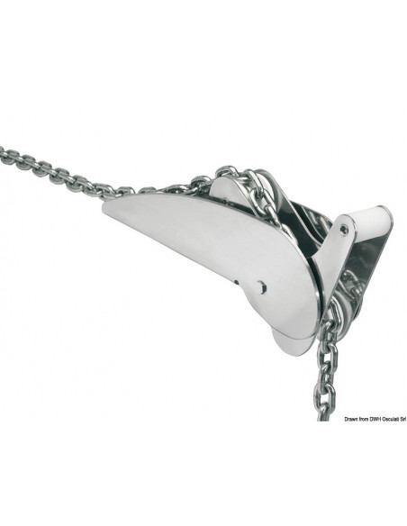 In acciaio inox lucidato. Pulegge in nylon. Universali per DELTA / BRUCE / TREFOIL / CQR / SOC.