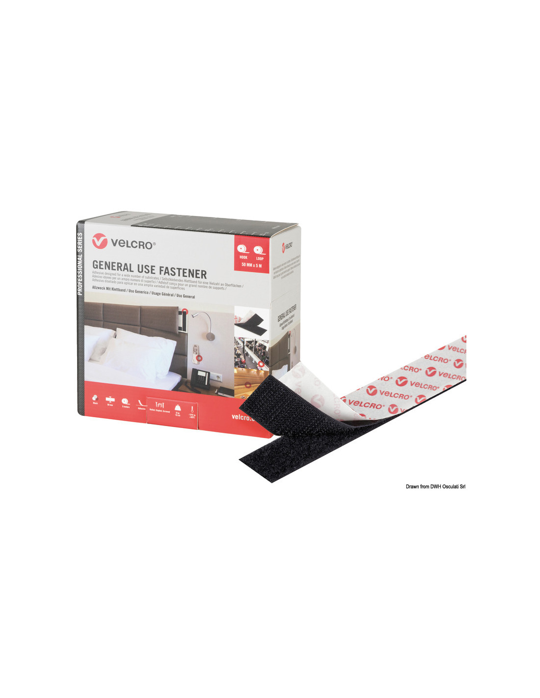 Nastro a strappo composto da asola e uncino con un altissimo ciclo di vita. L’adesivo consente il posizionamento veloce ed immediato.Sistema facile da usare soprattutto per materiali flessibili come tessuti, zanzariere, tendaggi, cuscineria, elementi decorativi leggeri. Consigliato per applicazioni in ambiente interno.