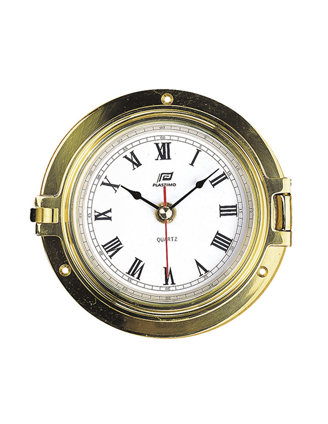 Strumento di bordo con meccanismo al quarzo. Case In ottone lucido con quadrante da Ø mm 100 e vetro smussato. Ø esterno da mm 140. Altezza mm 47