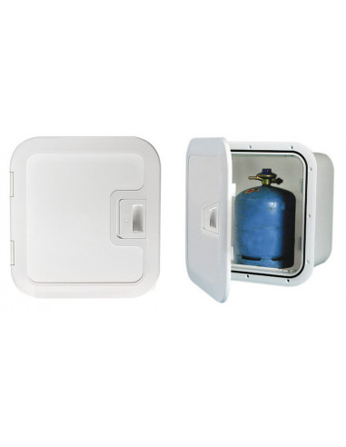 Per bombole da kg 3 con relativo regolatore di pressione. Sportello in Luran anti raggi UV. Completo di raccordo stagno per tubo gas. In accordo alla ISO 10239. Ventilazione del vano integrata nel portello. Apertura a destra come in foto; è possibile realizzare l'apertura a sinistra per minimo 5 pezzi.