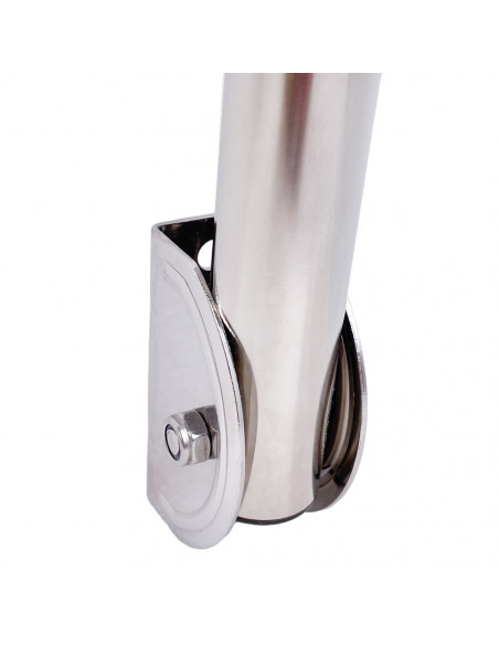 Piattaforma con struttura tubolare di acciaio inox AISI 316, dotata di due staffe di sostegno nella parte inferiore e particolari di fissaggio mobili.