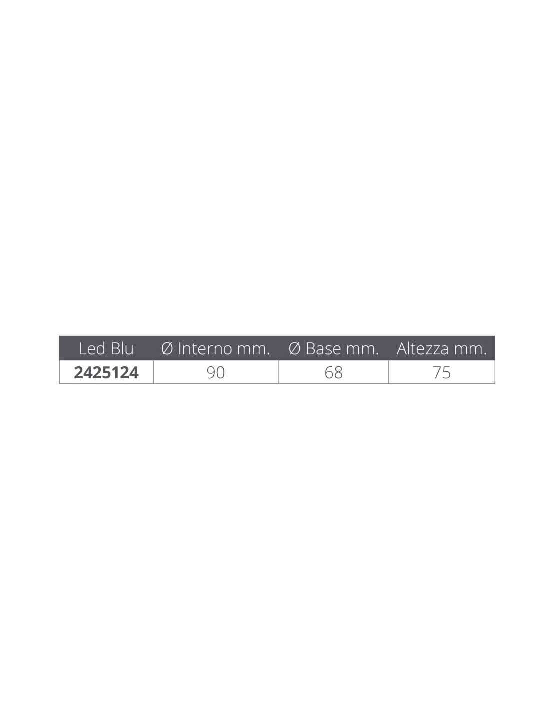 Ø interno mm 90, altezza mm 75, Ø base mm 68