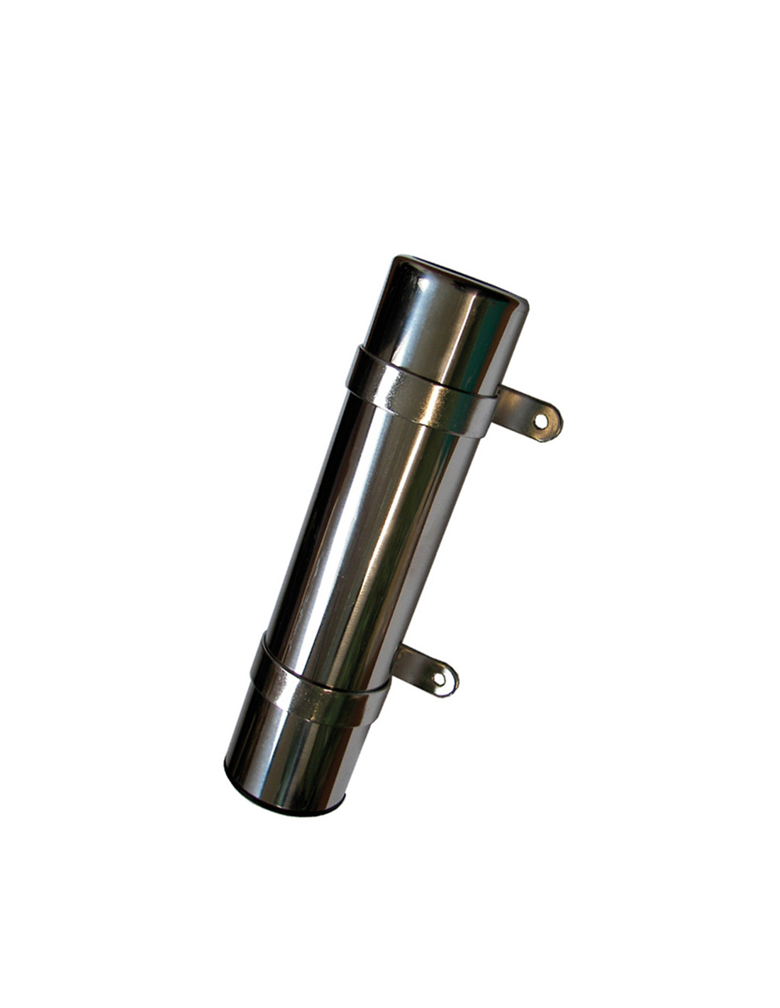 Portacanna in acciaio inox fisso da parete, fondo chiuso con scarico acqua. Senza spina interna di fermo, bordi arrotondati. Può servire anche come portacanne da riposo. Dim. Ø mm. 40, Lung. mm. 210.