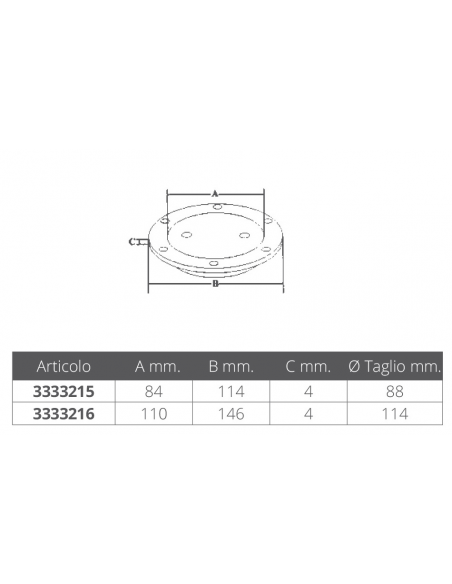 Tappo ispezione stagno in acciaio inox aisi 316 lucidato a specchio, dim. art. 3333215 ø esterno mm. 114, ø taglio mm. 88, art. 3333216 ø esterno mm. 146, ø taglio mm. 114