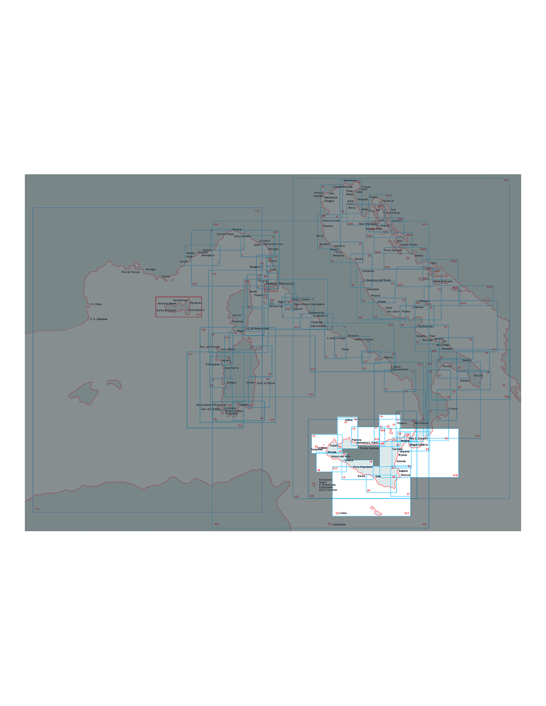 Carta nautica dell’Istituto Idrografico della Marina, in SCALA 1:100.000, stampata su foglio di dimensioni 83 x 116 cm