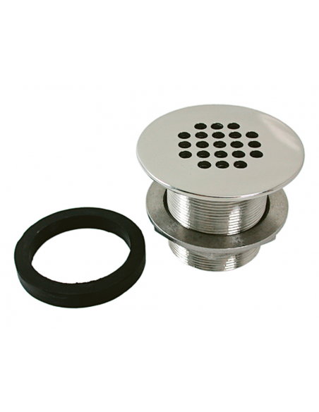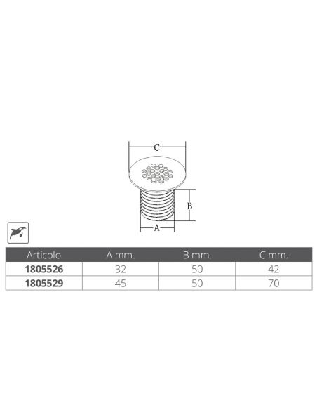Griglia di scarico in acciaio inox aisi 316 completa di guarnizioni in gomma per docce e pozzetti, dim. art. 1805526 ø portagomma di scarico mm. 32 ø griglia mm. 42 lunghezza portagomma mm. 50,