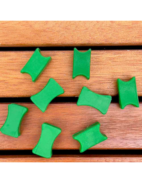 Dispositivi in plastica robusta e colorata da incastrare negli anelli di catena a maglia genovese.