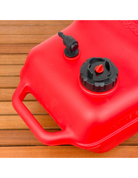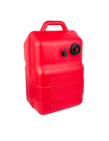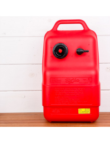Tanica leggera e portatile, compatta con comoda maniglia per il trasporto, facile da riporre nel relativo gavone, con funzionamento orizzontale, completa di riserva e riempimento al 90%, sistema pescante con filtro.
