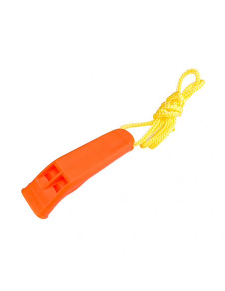 Anche il fischietto, di colore arancione, è facilmente individuabile e, grazie al laccetto, ha limitate possibilità di smarrimento.