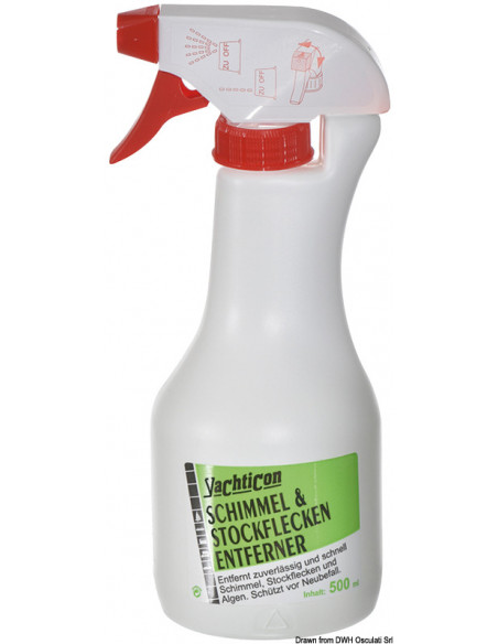 Spruzzato su vetroresina, tessuti vinilici (cuscini), vele in dacron ed ogni altro tessuto, rimuove macchie di ruggine e muffa. Rimuove gli odori. Il prodotto deve essere spruzzato, lasciato agire e solo risciacquato.