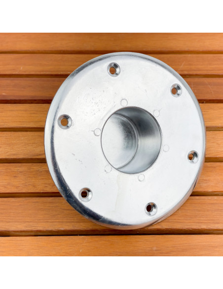 Alloggio a sezione conica per gamba da tavolo con fondo chiuso, da incassare nel pavimento.