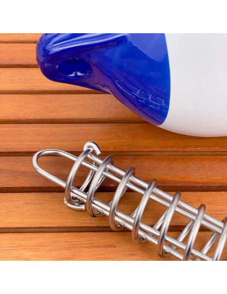 Robusta e durevole: molla realizzata in acciaio inox con finitura lucidata a specchio, resiste ottimamente al deterioramento, alla corrosione e alla ruggine causati dall’ambiente marino.