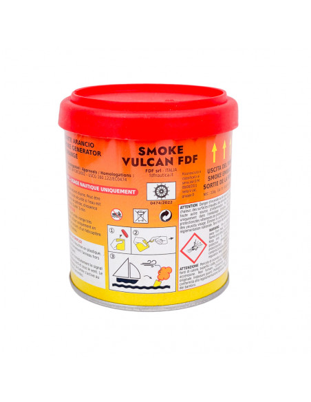 Il fumogeno emette fumo di colore arancione intenso per una durata di 3 min.