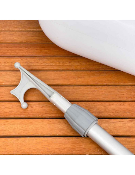 Il gancio in nylon rinforzato assicura durata e sicurezza nell’uso, mentre la manopola in gomma antiscivolo garantisce una presa stabile anche in condizioni umide.