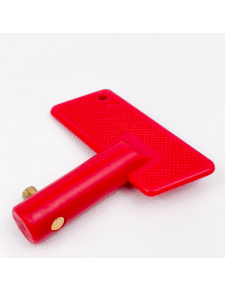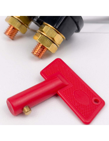 Levetta di riserva per stacca batteria max 100 A per l' interruzione di corrente elettrica realizzata in materiale plastico e rame.