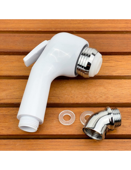 Doccetta di ricambio per docce da barca o camper in ABS bianco e ottone cromato, a risparmio idrico: è dotato di levetta di attivazione antiscivolo che permette di controllare e interrompere il flusso, evitando sprechi d’acqua dolce.