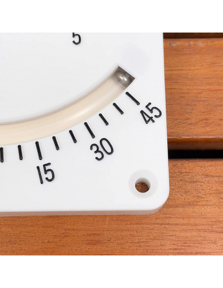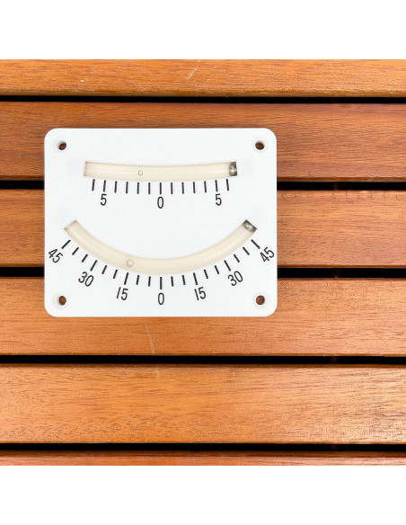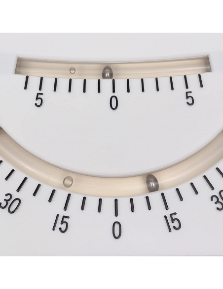 Una scala misura 45° - 0 - 45° con tratti parziali da 15°; la scala amplificata misura 6° - 0 - 6°, con parziali da 1°.