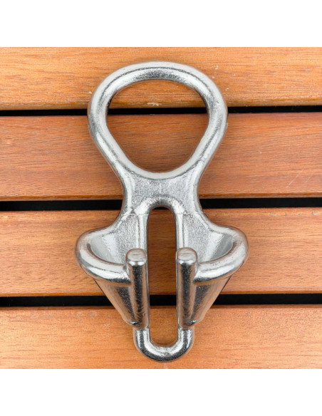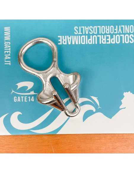 Blocca catena per ormeggi sicuri: si incastra tra le maglie della catena dell’ancora già in mare per scaricare il verricello di parte dello sforzo dell’ancoraggio.