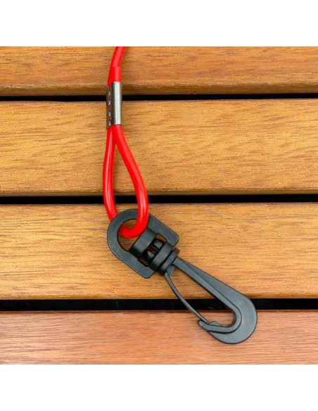 Il moschettone in PVC non è fisso ma gira su se stesso per evitare grovigli.