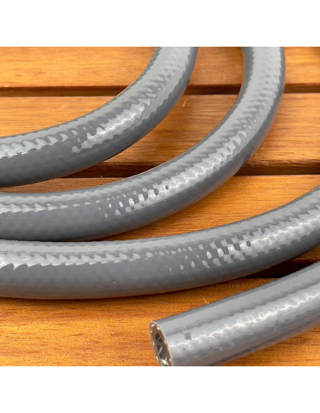 Pompa a mano per travaso benzina con tubo in polipropilene coestruso e calza in poliestere, sezione da ⅜ “, priva di innesti alle estremità.